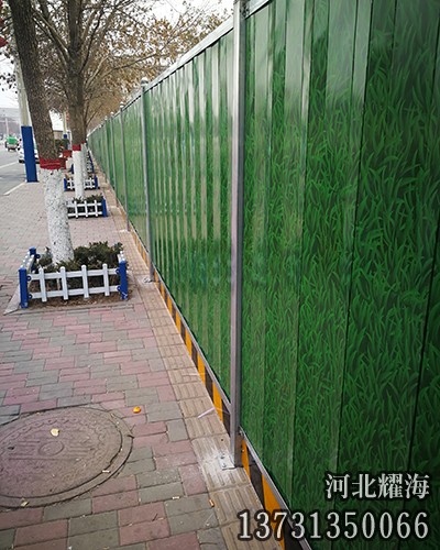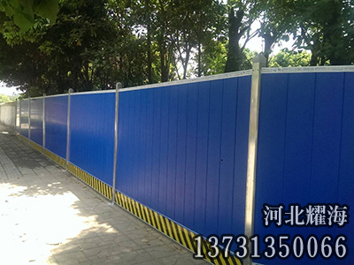 彩鋼板臨時圍墻特點(diǎn);彩鋼板臨時圍墻采用鋼結(jié)構(gòu)柱,雙面夾芯彩鋼板或單層壓型彩鋼板通過螺栓連接而成。用彩鋼板固定于柵欄之上,用于臨時工地的隔離,方便、可多次使用。