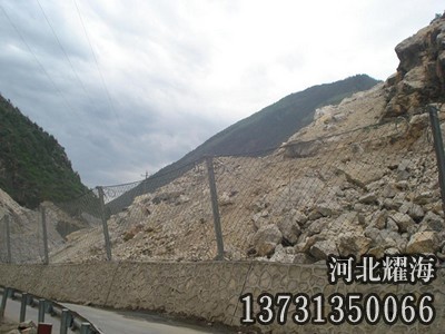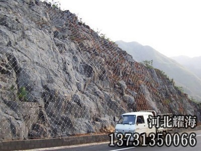 邊坡攔石防護(hù)網(wǎng)主要以鋼絲繩為主編制而成的鋼絲繩網(wǎng),邊坡攔石防護(hù)網(wǎng)一般采用上/下支撐繩(每跨平均減壓環(huán)數(shù)):Φ22雙繩,每跨每根各1/2個減壓環(huán)(8),上拉錨繩:Φ18單繩,“人”字形布置,每根各一個減壓環(huán)。側(cè)拉錨繩:Φ18雙繩下拉及中間加固拉錨繩:Φ18單繩,縫合繩:Φ14。主要零部件有a) 鋼絲繩網(wǎng):用于鋼絲繩網(wǎng)類主動防護(hù)和被動防護(hù);b) 鋼絲網(wǎng)、減壓器(環(huán))、鋼柱:用于被動防護(hù),由工字鋼等組合構(gòu)成;c) 鋼絲繩錨桿:用于被動防護(hù),由螺紋鋼加工而成;d) 各種五金、標(biāo)準(zhǔn)件等。