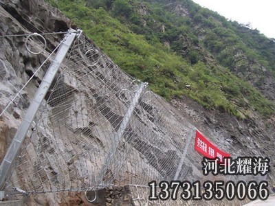 被動(dòng)防護(hù)網(wǎng)的柔性和攔截強(qiáng)度足以吸收和分散傳遞500KJ以?xún)?nèi)的落石沖擊動(dòng)能,消能環(huán)的設(shè)計(jì)和采用使系統(tǒng)的抗沖擊能力得到進(jìn)一步提高SNS被動(dòng)防護(hù)網(wǎng)與剛性攔截和砌漿擋墻相比較,改變了原有施工工藝,使工期和資金得到減少。